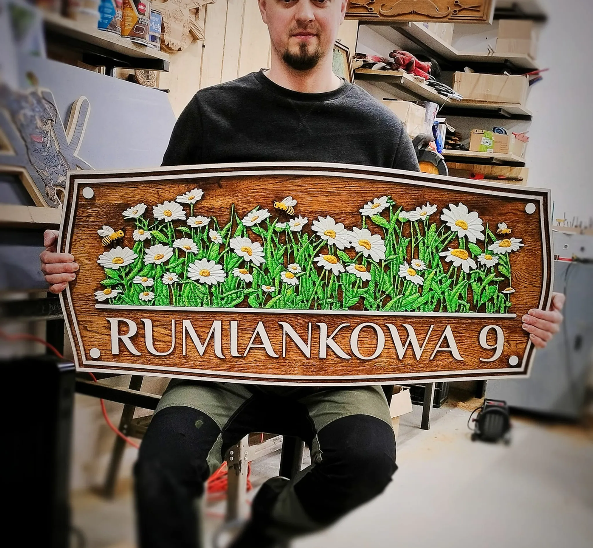Każdy element moich prac jest wykonany z dbałością o szczegóły, zapewniając jakość i trwałość na wiele lat. Zmień oblicze swojego domu z wyjątkowym szyldem adresowym autorskiego projektu.